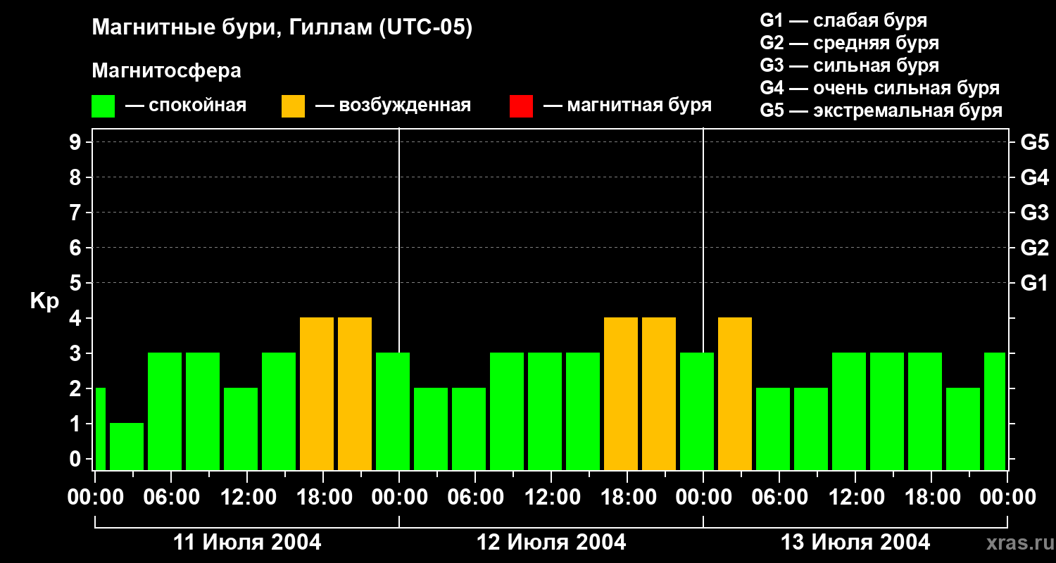 Магнитные бури в Гилламе — 13 июля 2004 года