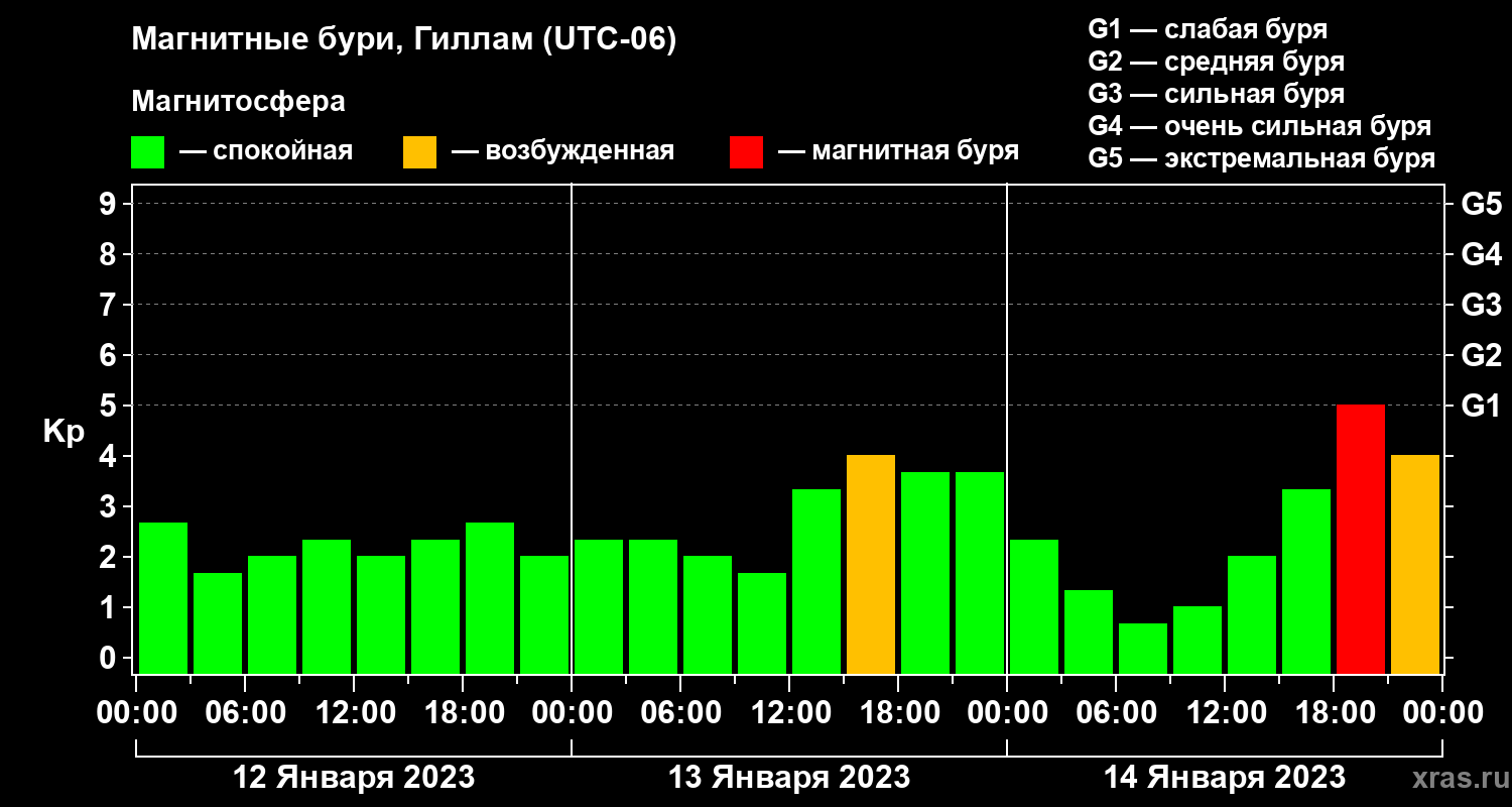 Магнитные бури в Гилламе 14 января 2023 года