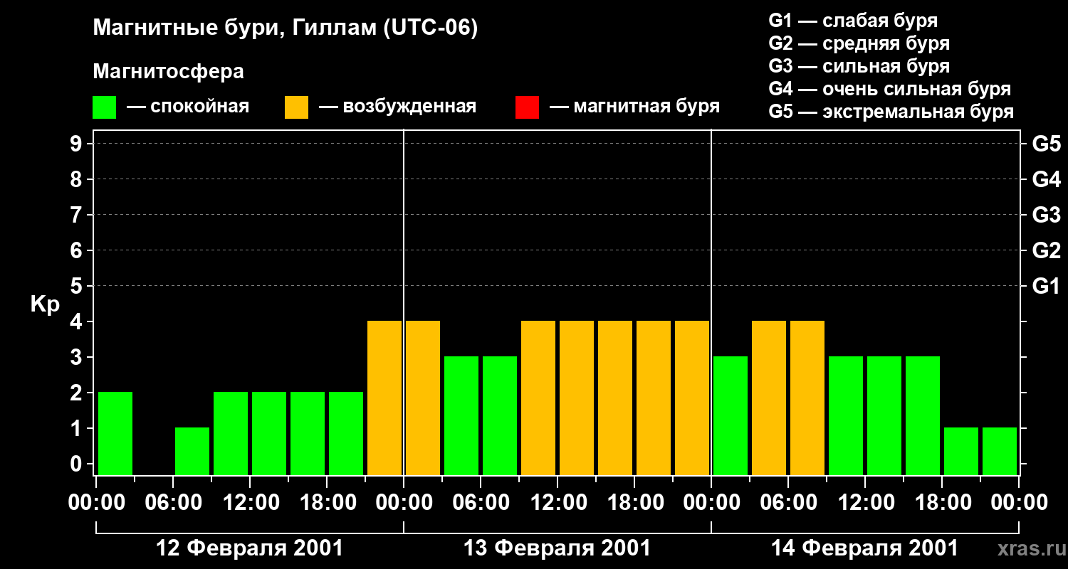 Магнитные бури в Гилламе — 14 февраля 2001 года