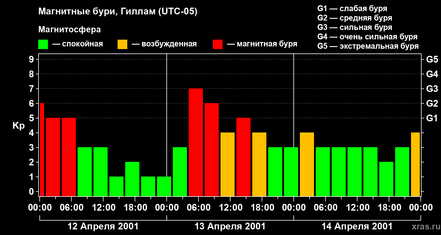 Магнитные бури в Гилламе — 14 апреля 2001 года