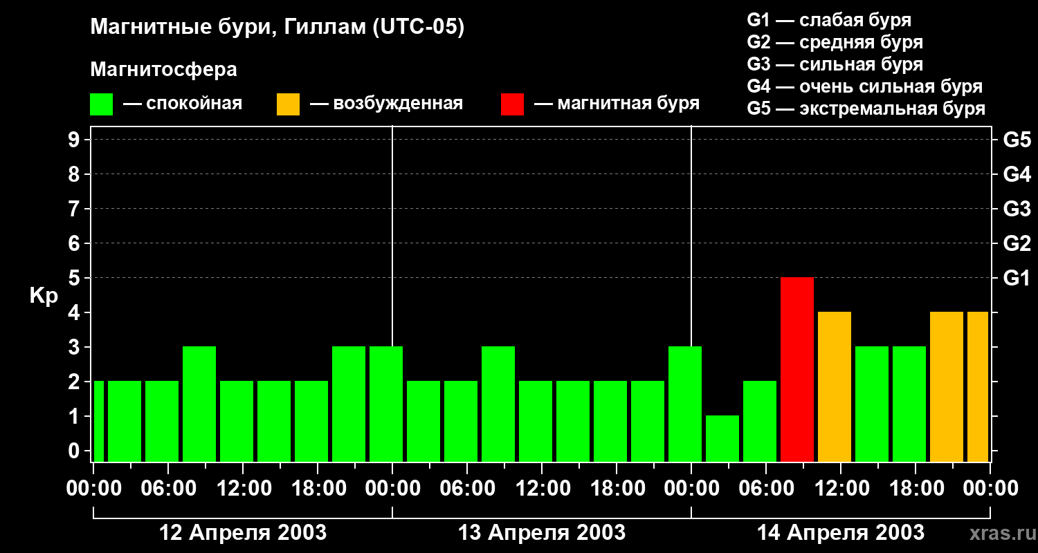 Магнитные бури в Гилламе — 14 апреля 2003 года