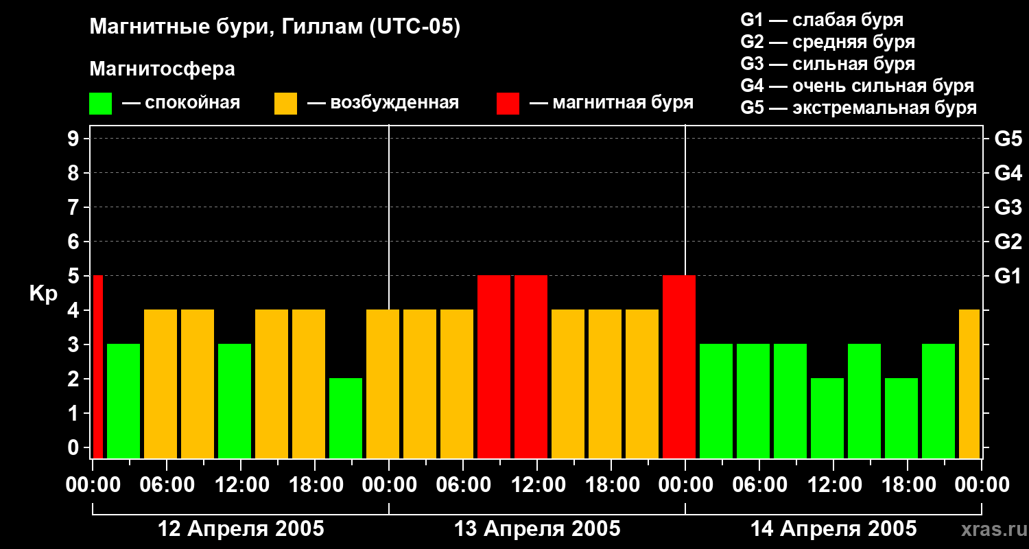 Магнитные бури в Гилламе — 14 апреля 2005 года