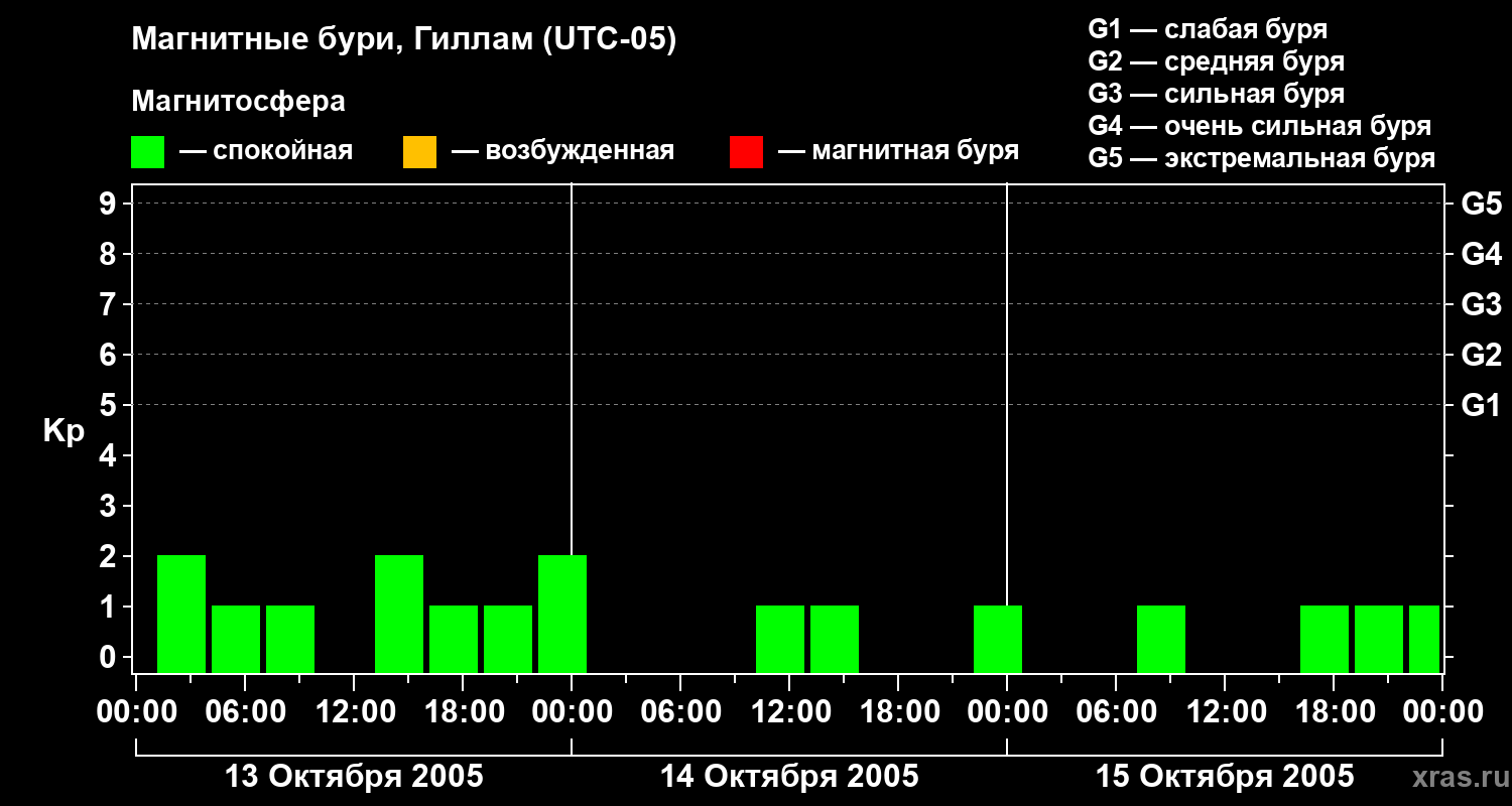 Магнитные бури в Гилламе — 15 октября 2005 года