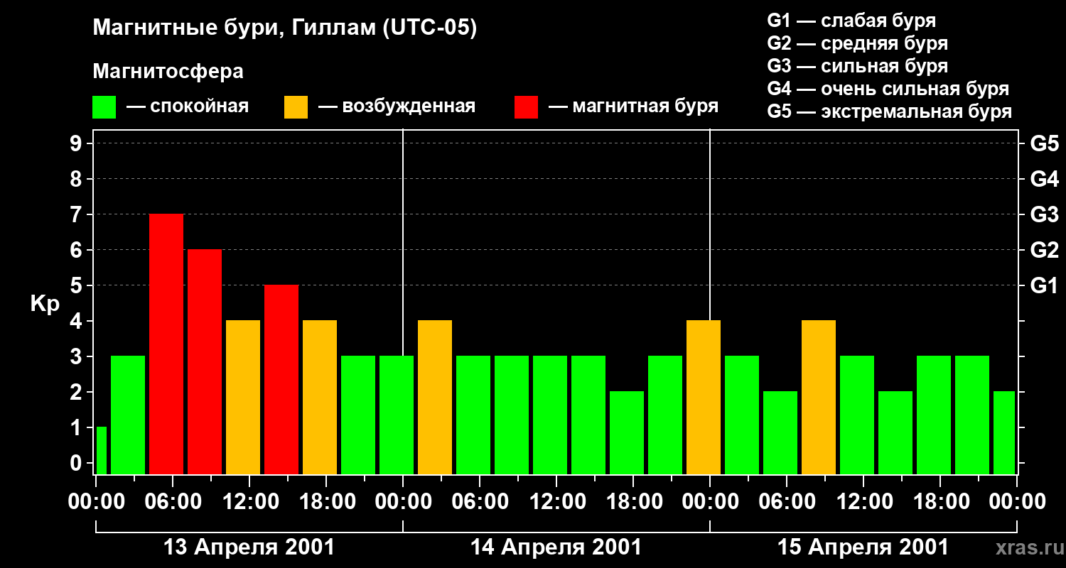Магнитные бури в Гилламе — 15 апреля 2001 года