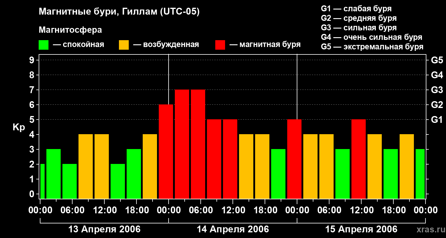 Магнитные бури в Гилламе — 15 апреля 2006 года
