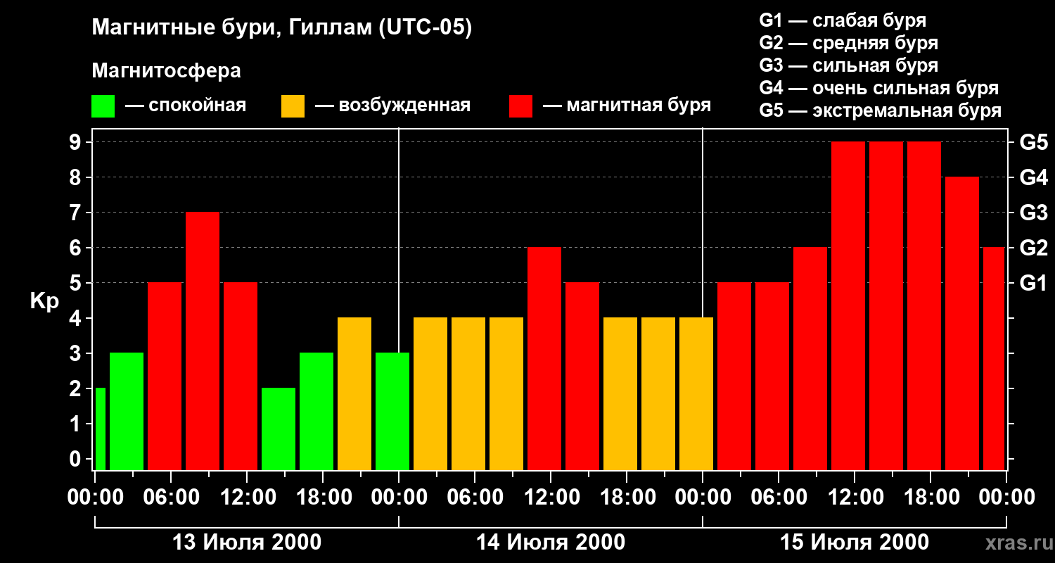 Магнитные бури в Гилламе — 15 июля 2000 года
