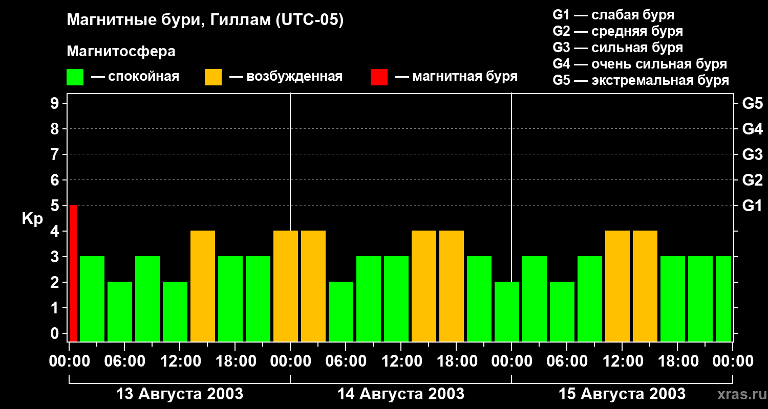 Магнитные бури в Гилламе — 15 августа 2003 года