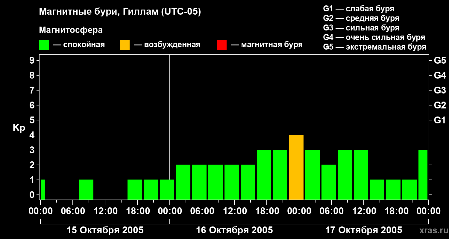 Магнитные бури в Гилламе — 17 октября 2005 года