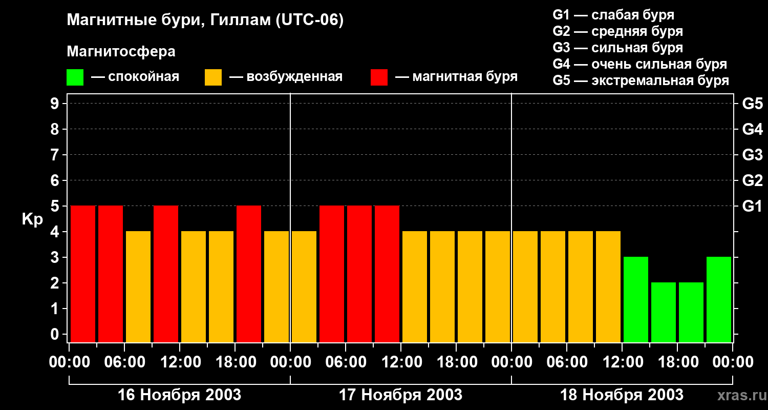 Магнитные бури в Гилламе — 18 ноября 2003 года