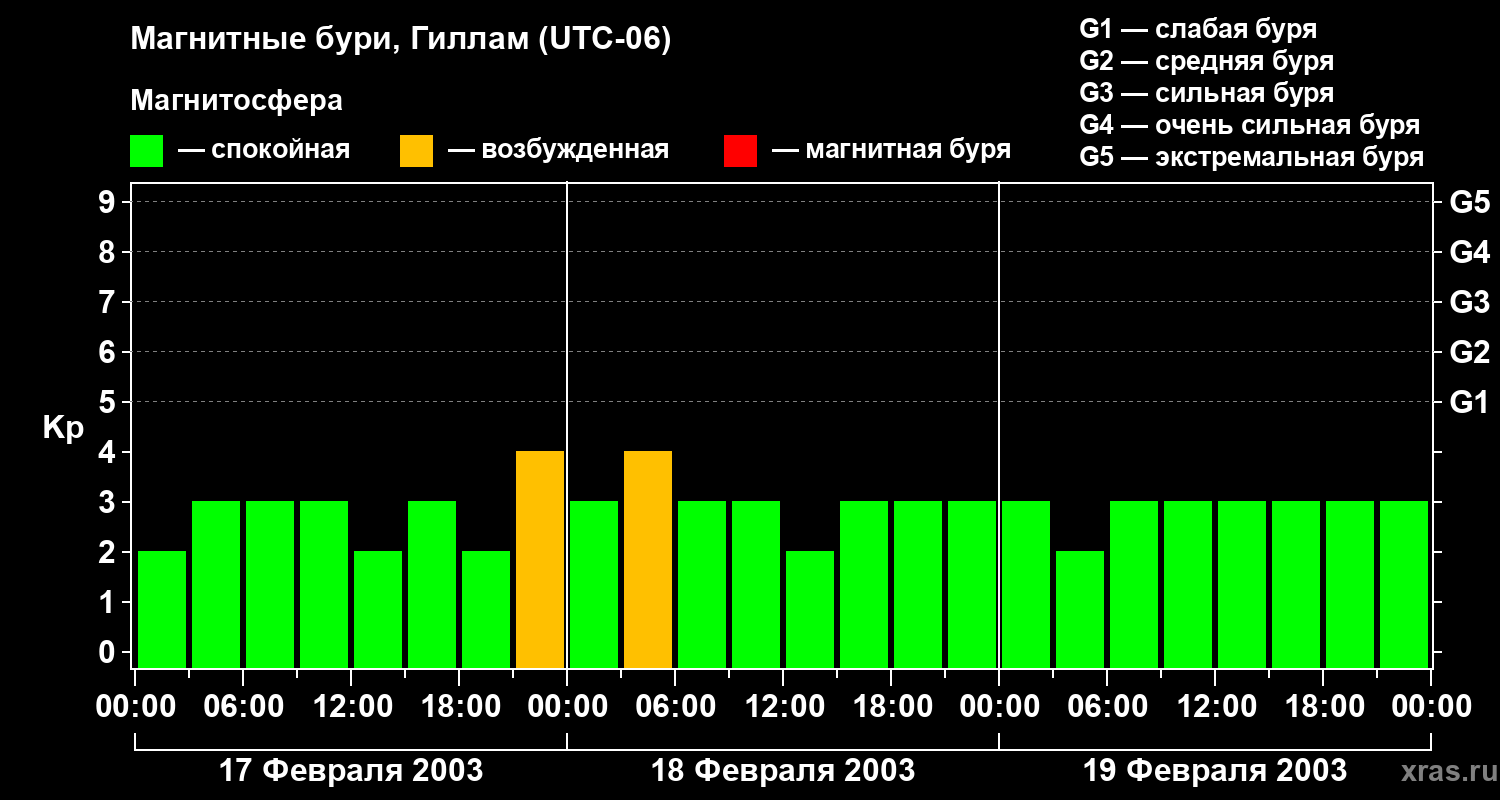 Магнитные бури в Гилламе — 19 февраля 2003 года