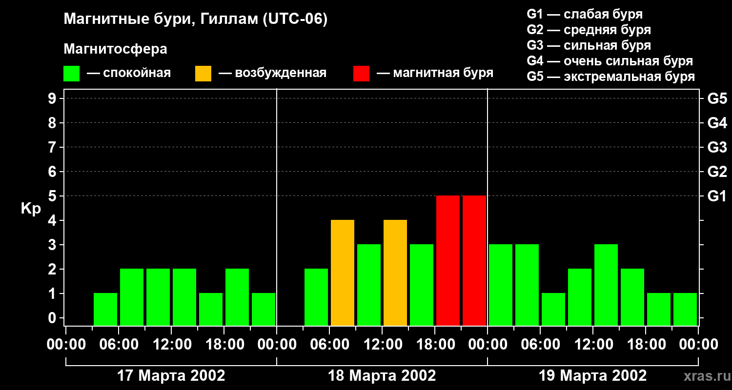 Магнитные бури в Гилламе — 19 марта 2002 года