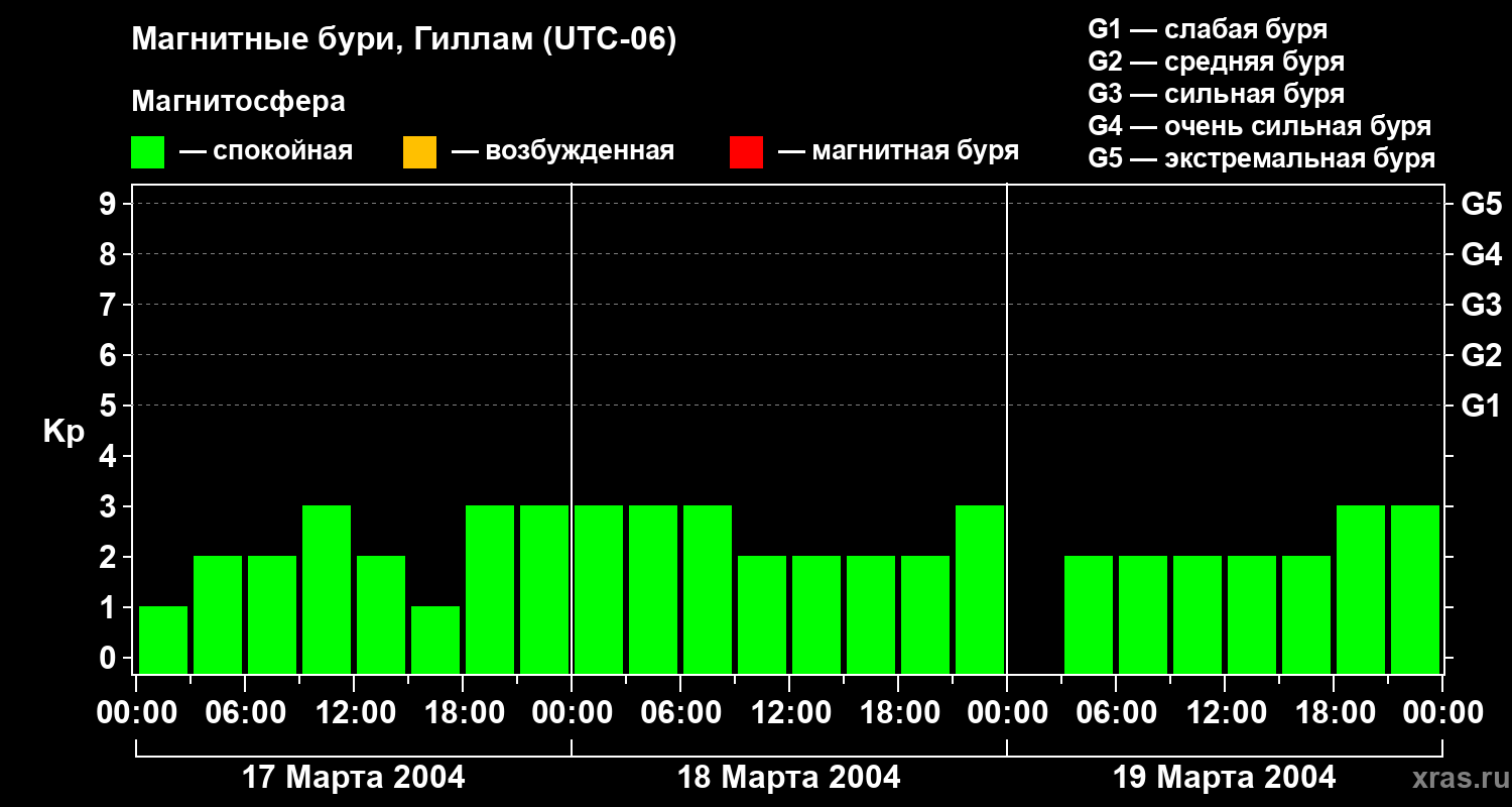 Магнитные бури в Гилламе — 19 марта 2004 года