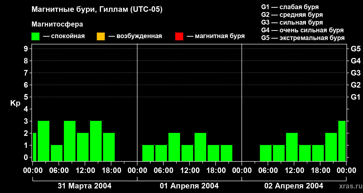 Магнитные бури в Гилламе 2 апреля 2004 года
