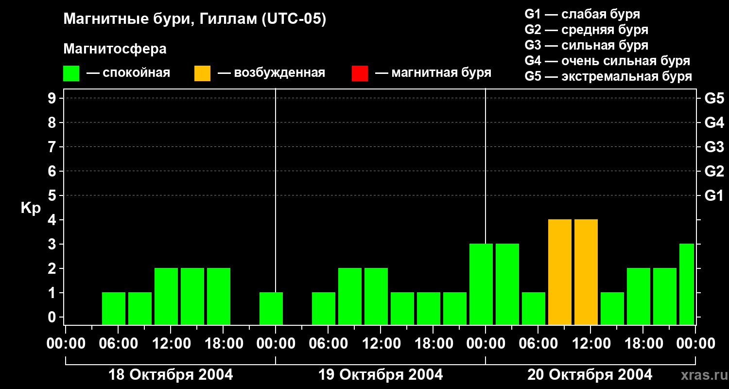 Магнитные бури в Гилламе — 20 октября 2004 года