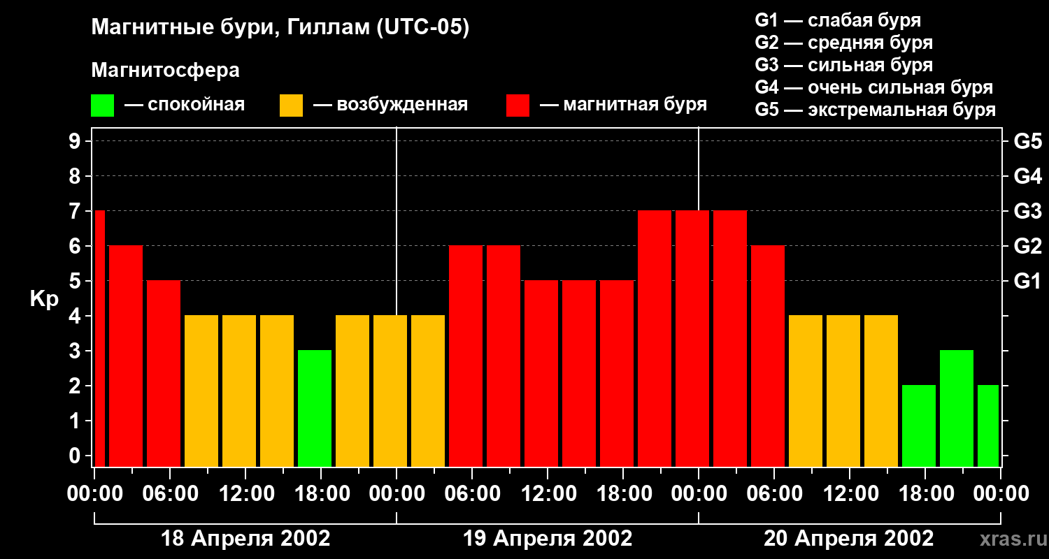 Магнитные бури в Гилламе — 20 апреля 2002 года