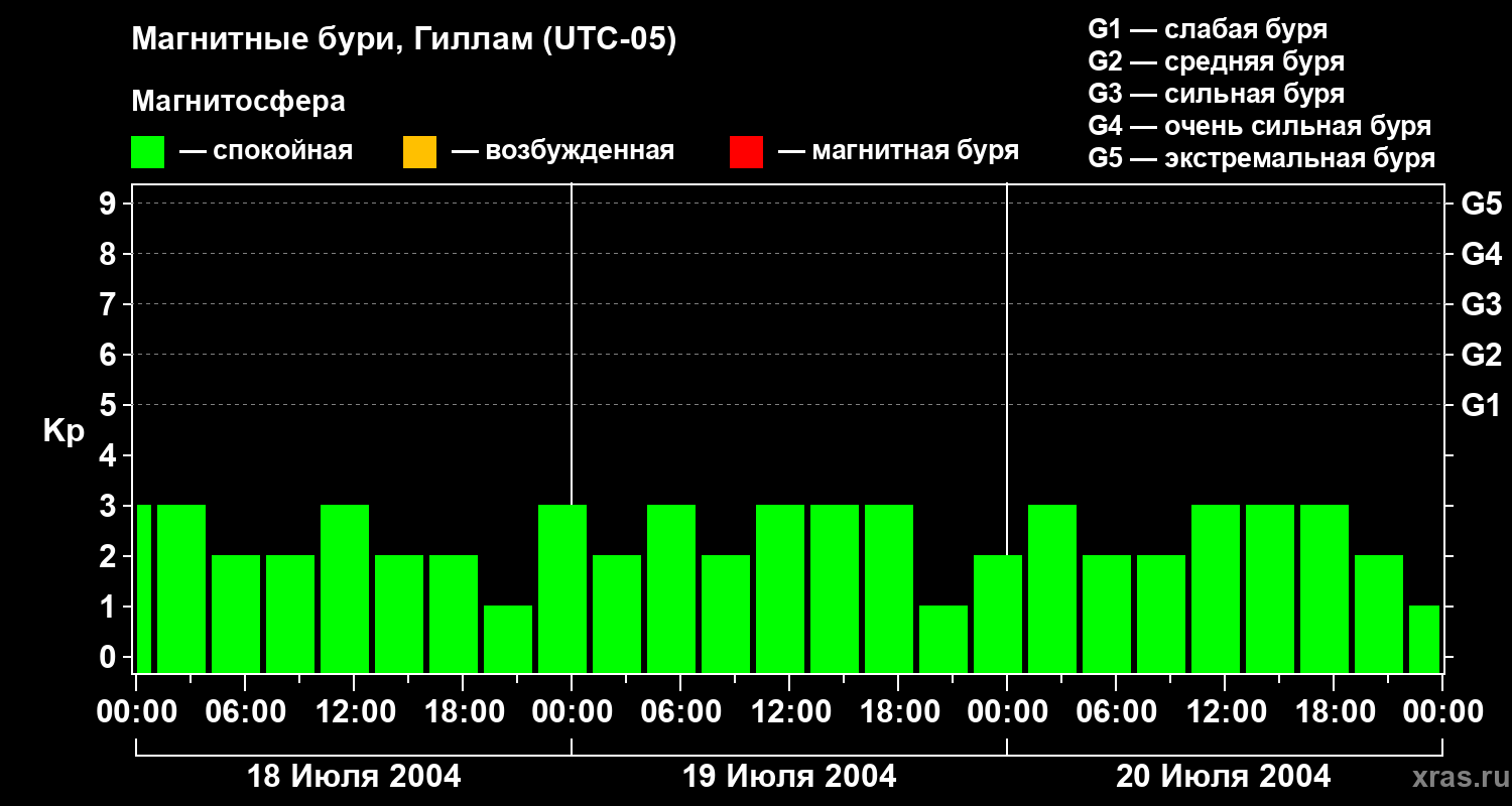 Магнитные бури в Гилламе — 20 июля 2004 года