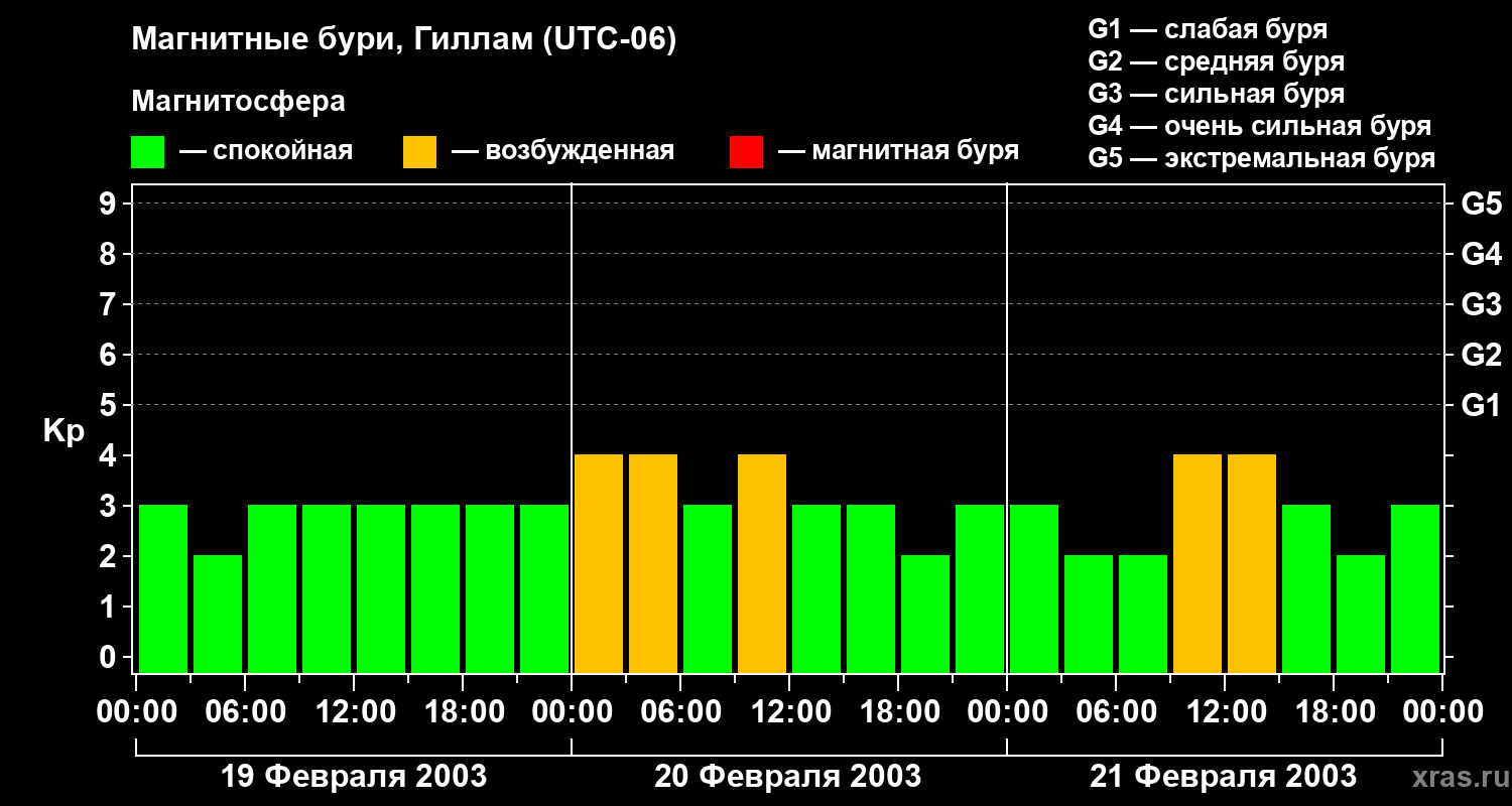 Магнитные бури в Гилламе — 21 февраля 2003 года