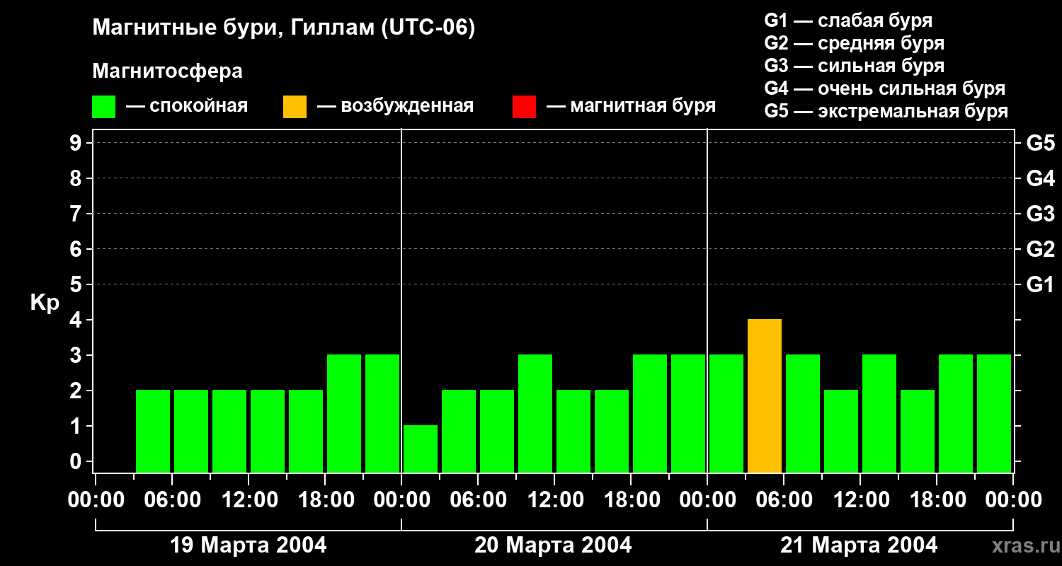 Магнитные бури в Гилламе — 21 марта 2004 года
