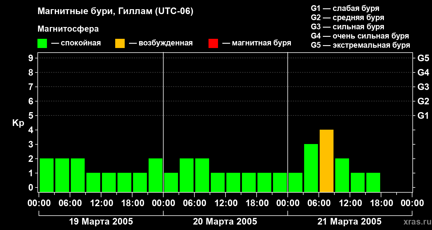 Магнитные бури в Гилламе 21 марта 2005 года