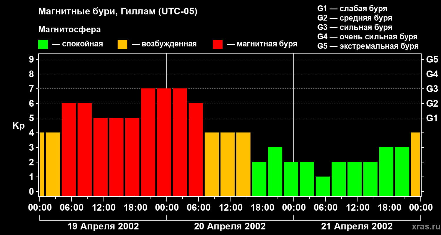 Магнитные бури в Гилламе — 21 апреля 2002 года