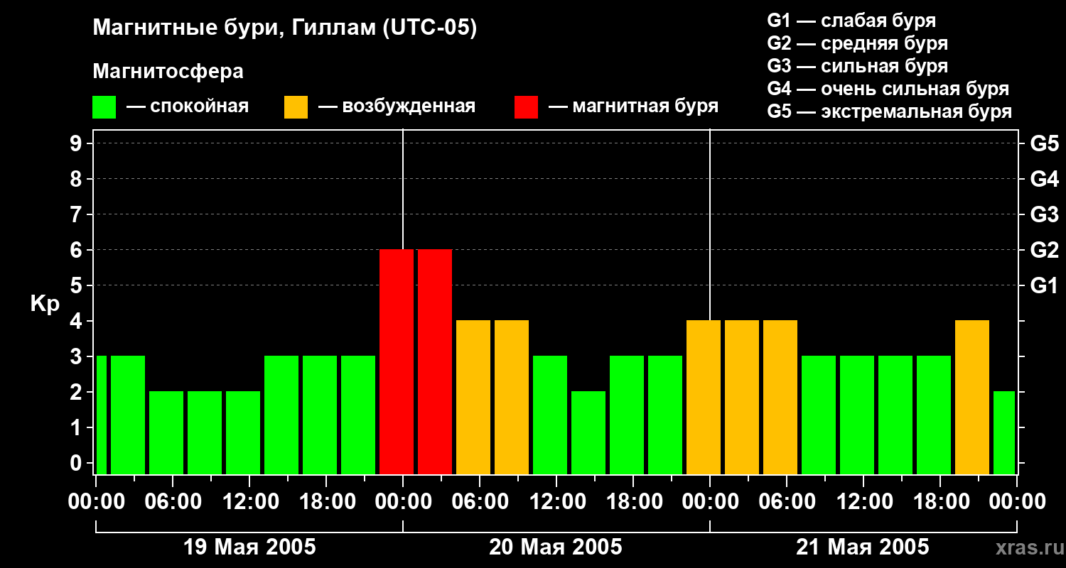 Магнитные бури в Гилламе — 21 мая 2005 года