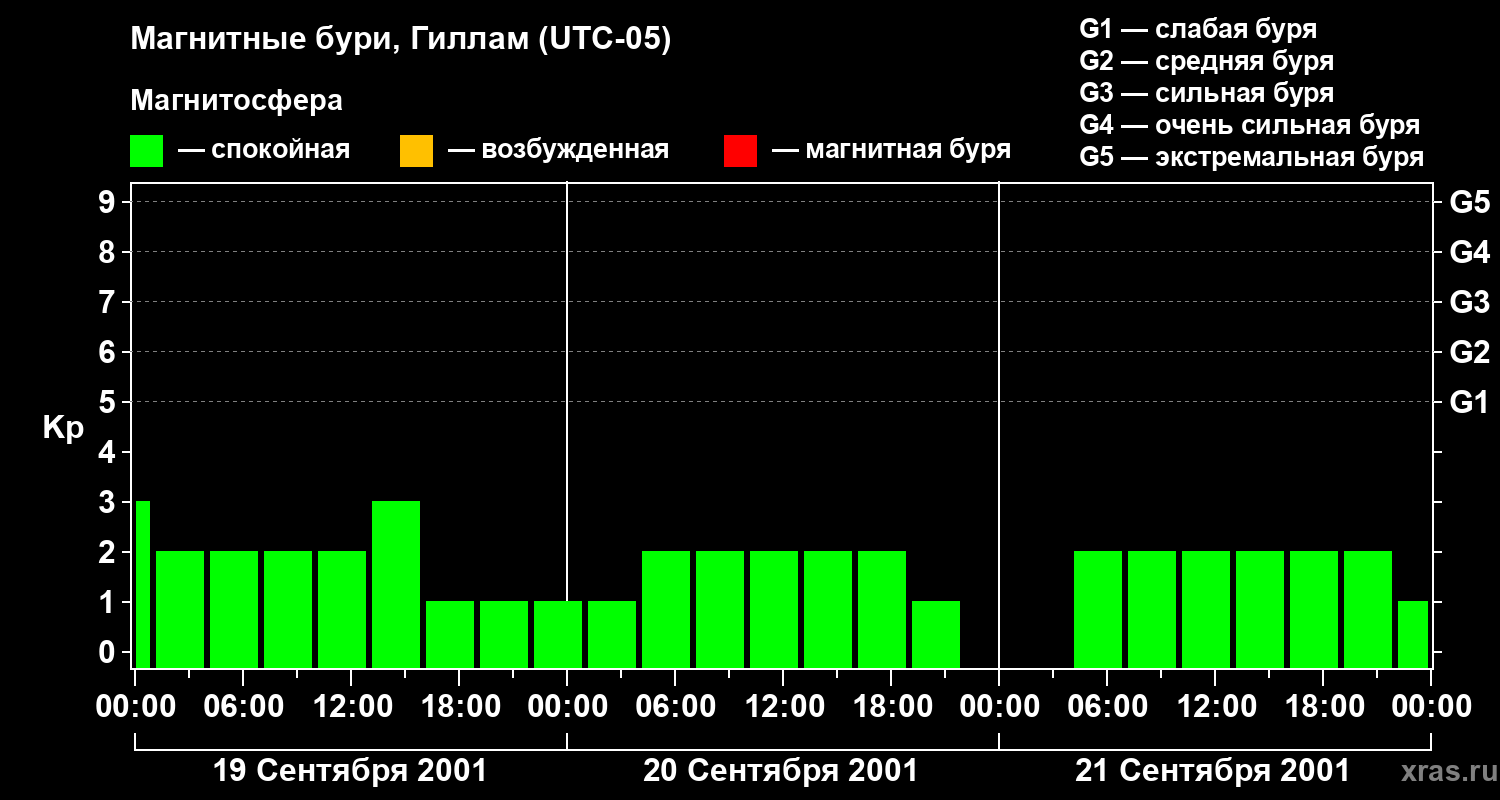 Магнитные бури в Гилламе 21 сентября 2001 года