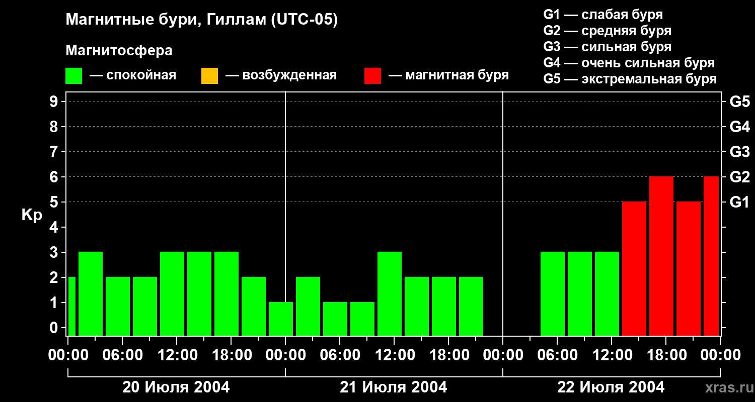 Магнитные бури в Гилламе — 22 июля 2004 года