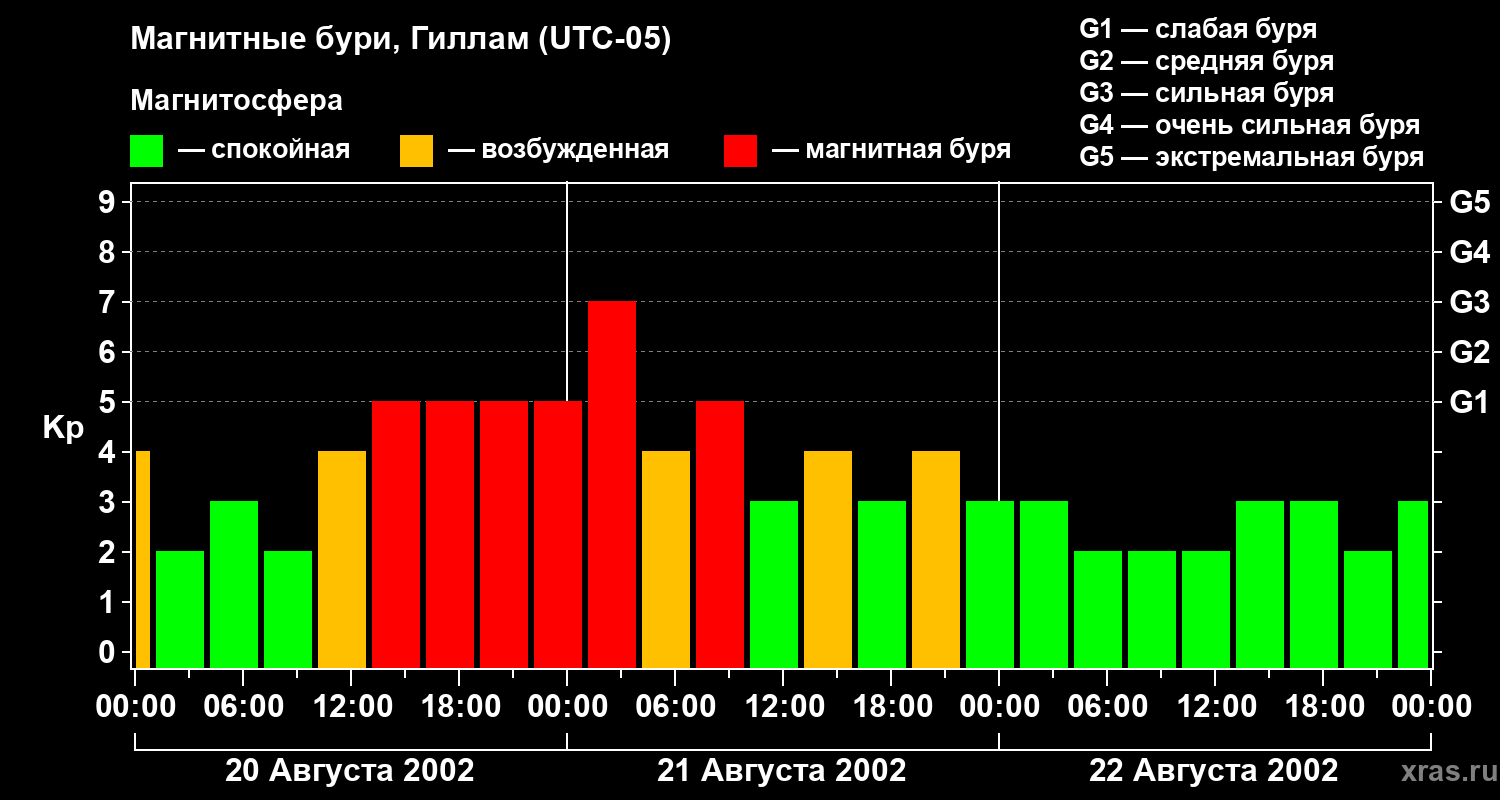 Магнитные бури в Гилламе — 22 августа 2002 года