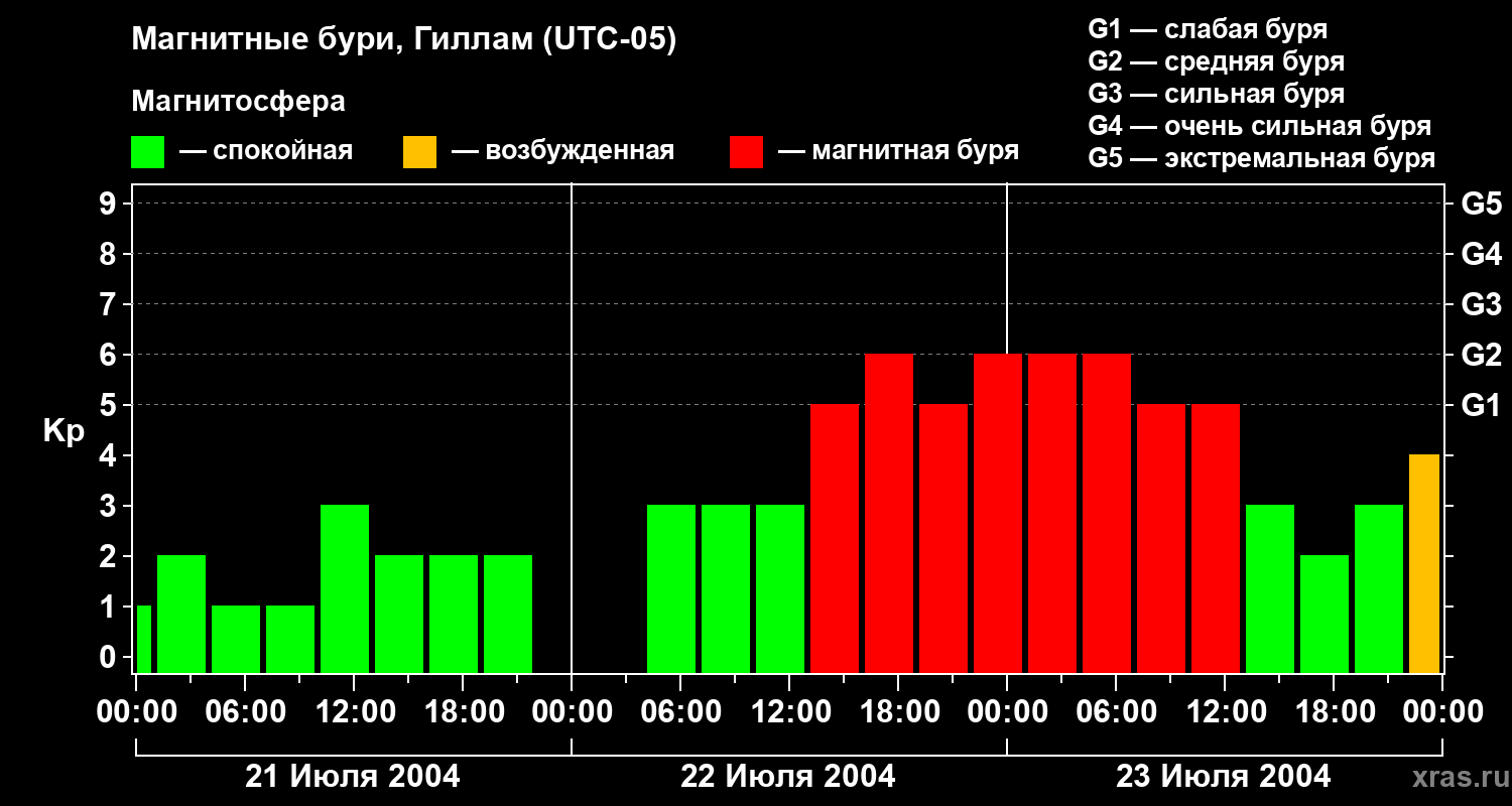 Магнитные бури в Гилламе — 23 июля 2004 года