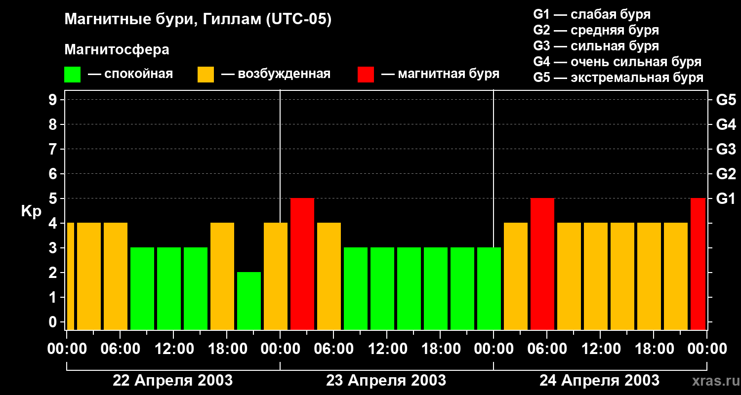 Магнитные бури в Гилламе — 24 апреля 2003 года