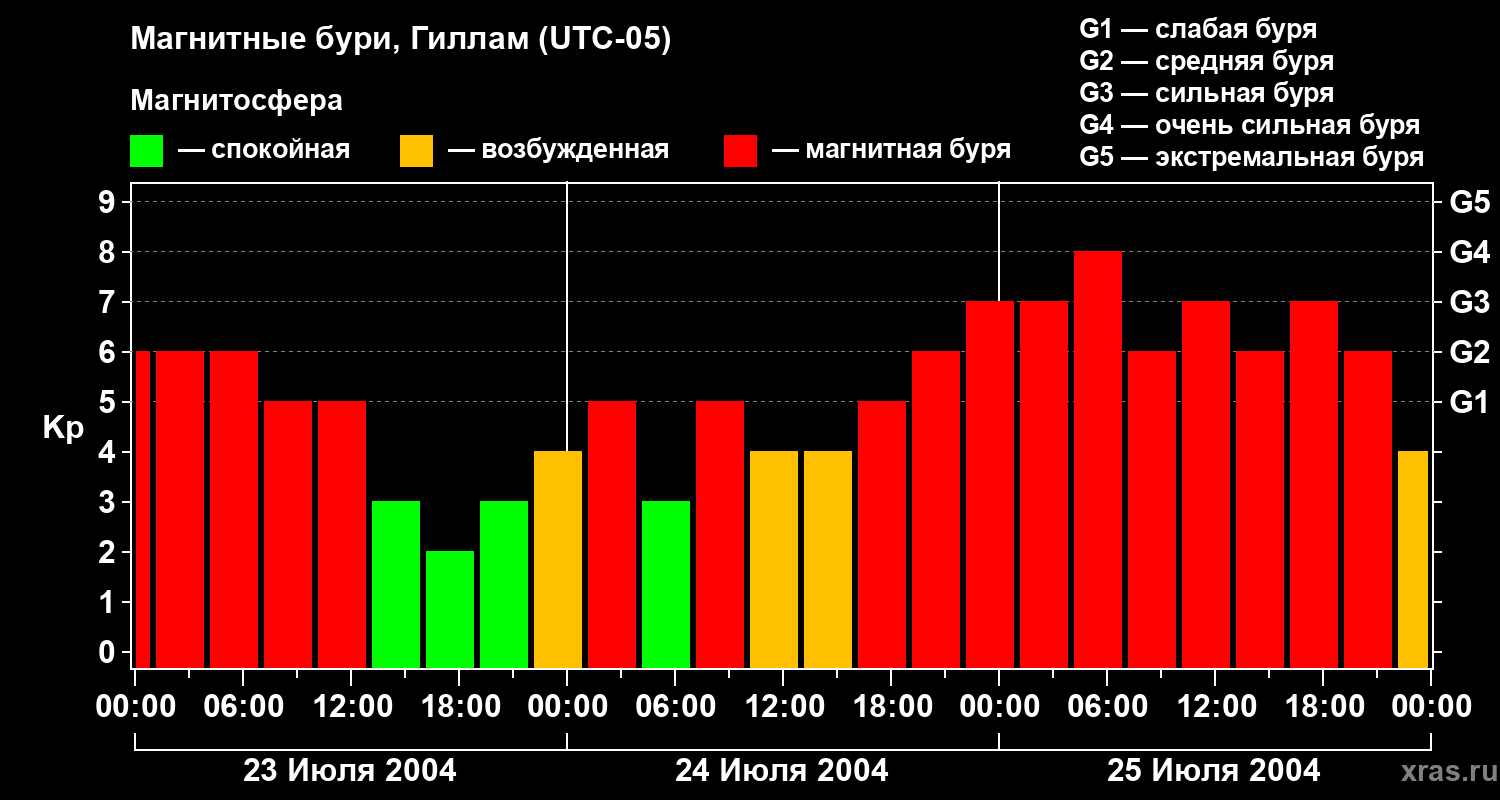 Магнитные бури в Гилламе — 25 июля 2004 года