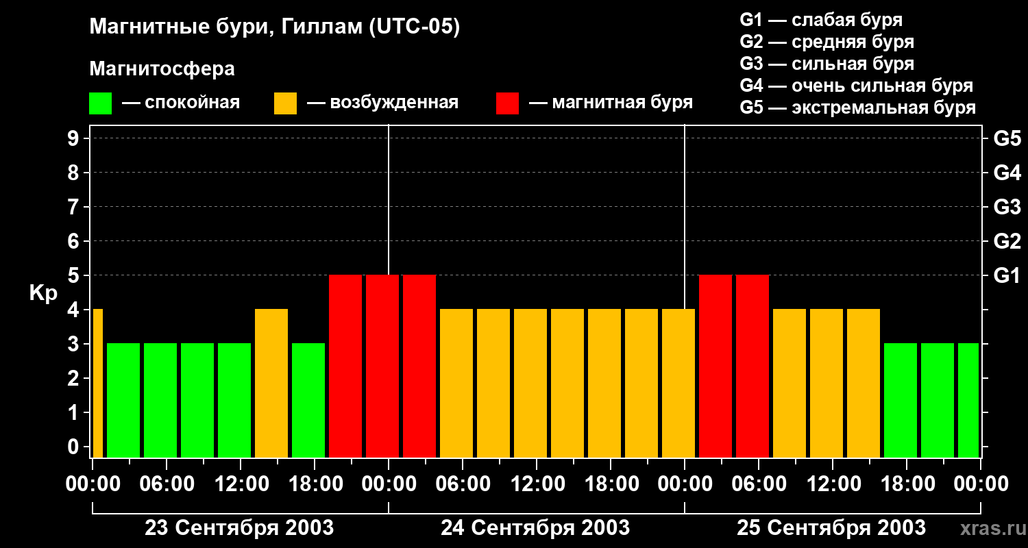 Магнитные бури в Гилламе — 25 сентября 2003 года
