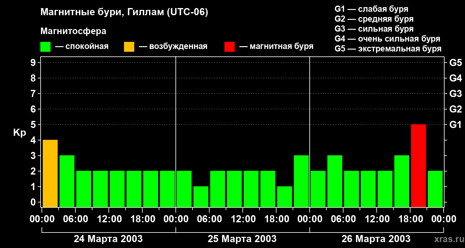 Магнитные бури в Гилламе — 26 марта 2003 года