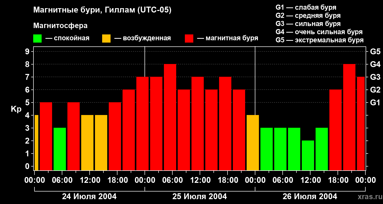 Магнитные бури в Гилламе — 26 июля 2004 года
