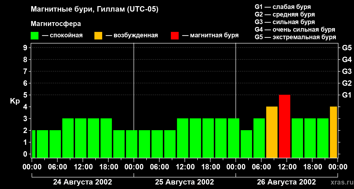 Магнитные бури в Гилламе 26 августа 2002 года