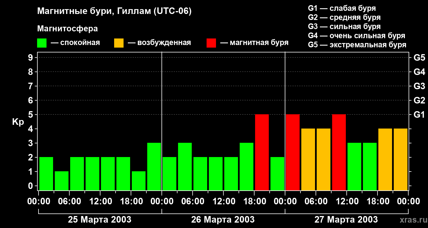 Магнитные бури в Гилламе — 27 марта 2003 года