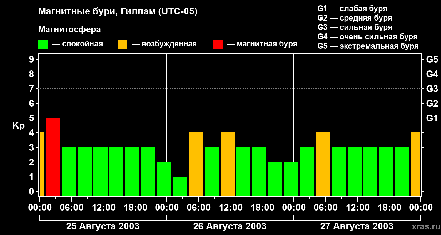 Магнитные бури в Гилламе — 27 августа 2003 года