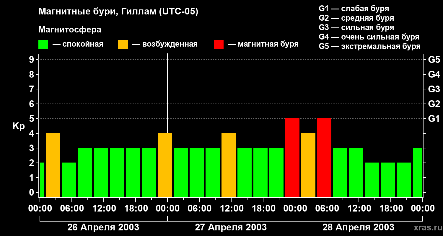 Магнитные бури в Гилламе — 28 апреля 2003 года