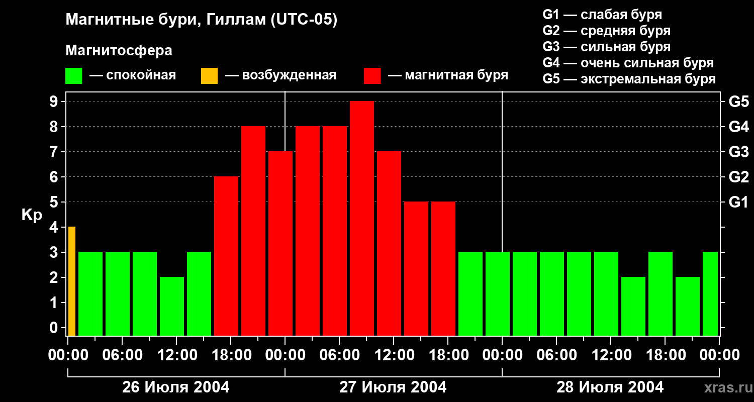 Магнитные бури в Гилламе — 28 июля 2004 года