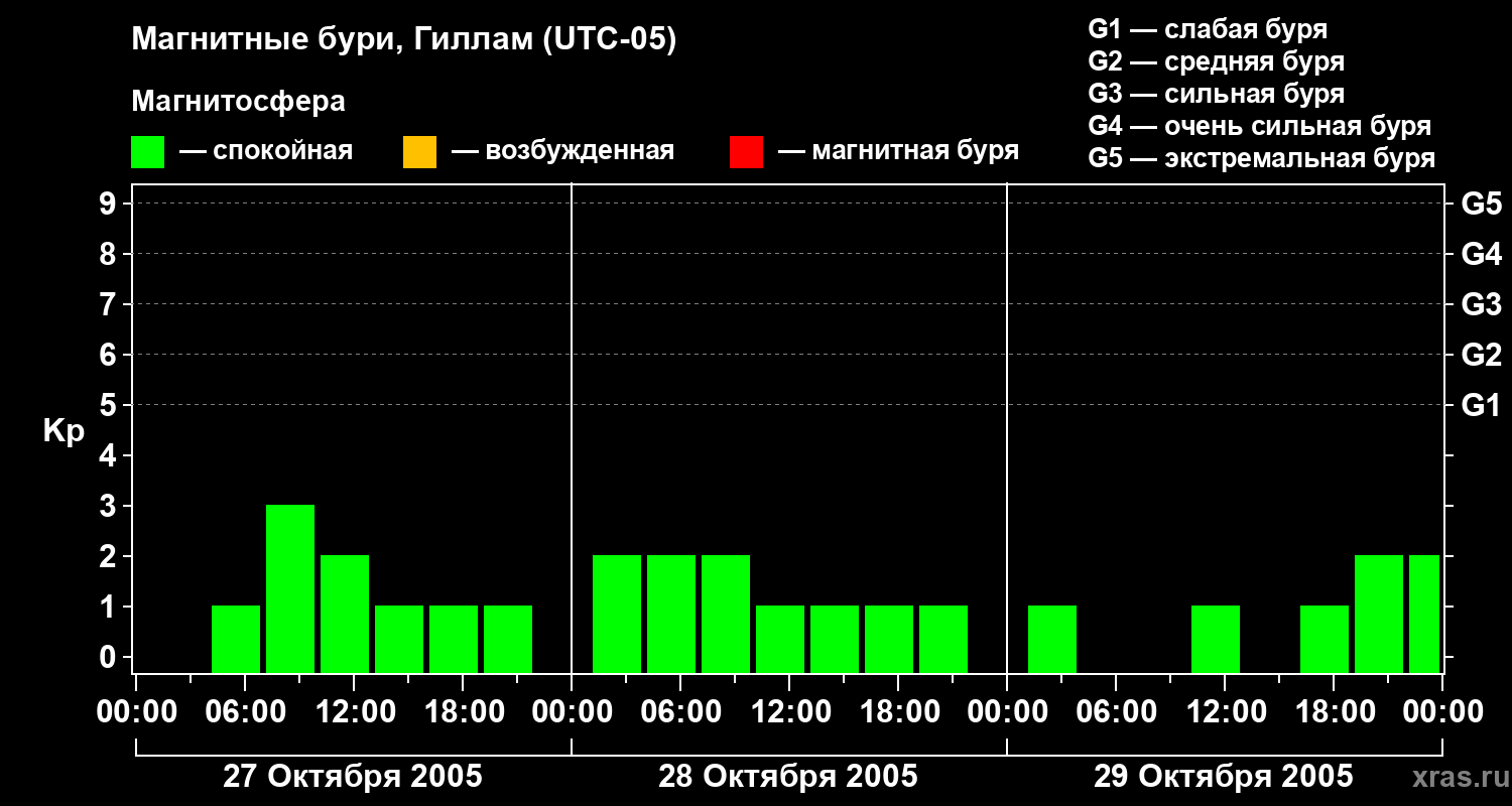 Магнитные бури в Гилламе — 29 октября 2005 года