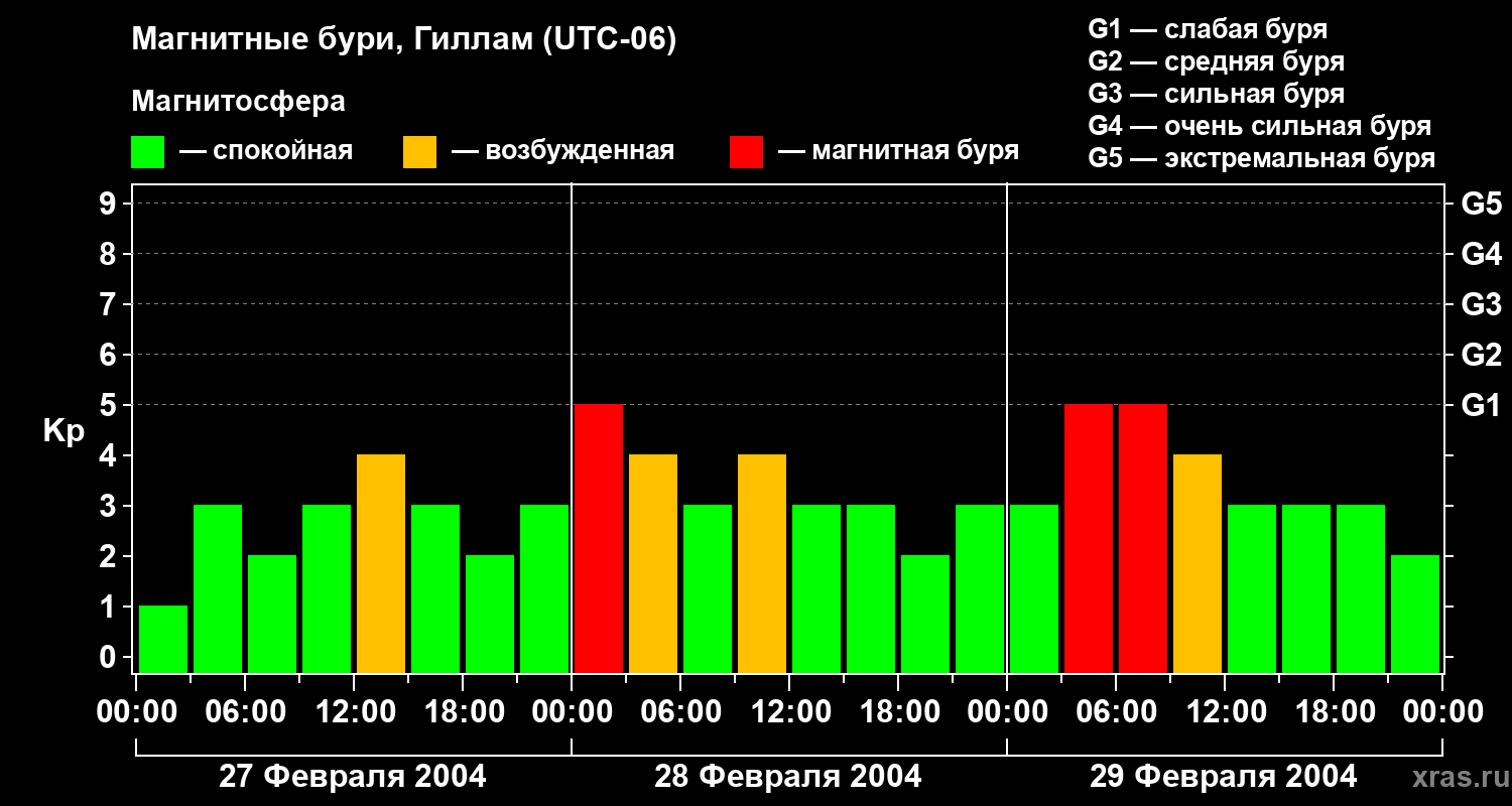 Магнитные бури в Гилламе — 29 февраля 2004 года
