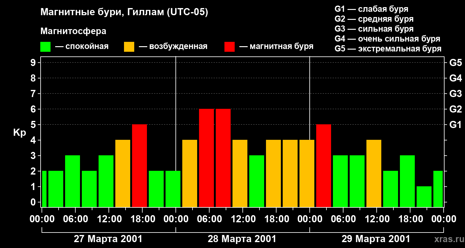 Магнитные бури в Гилламе — 29 марта 2001 года