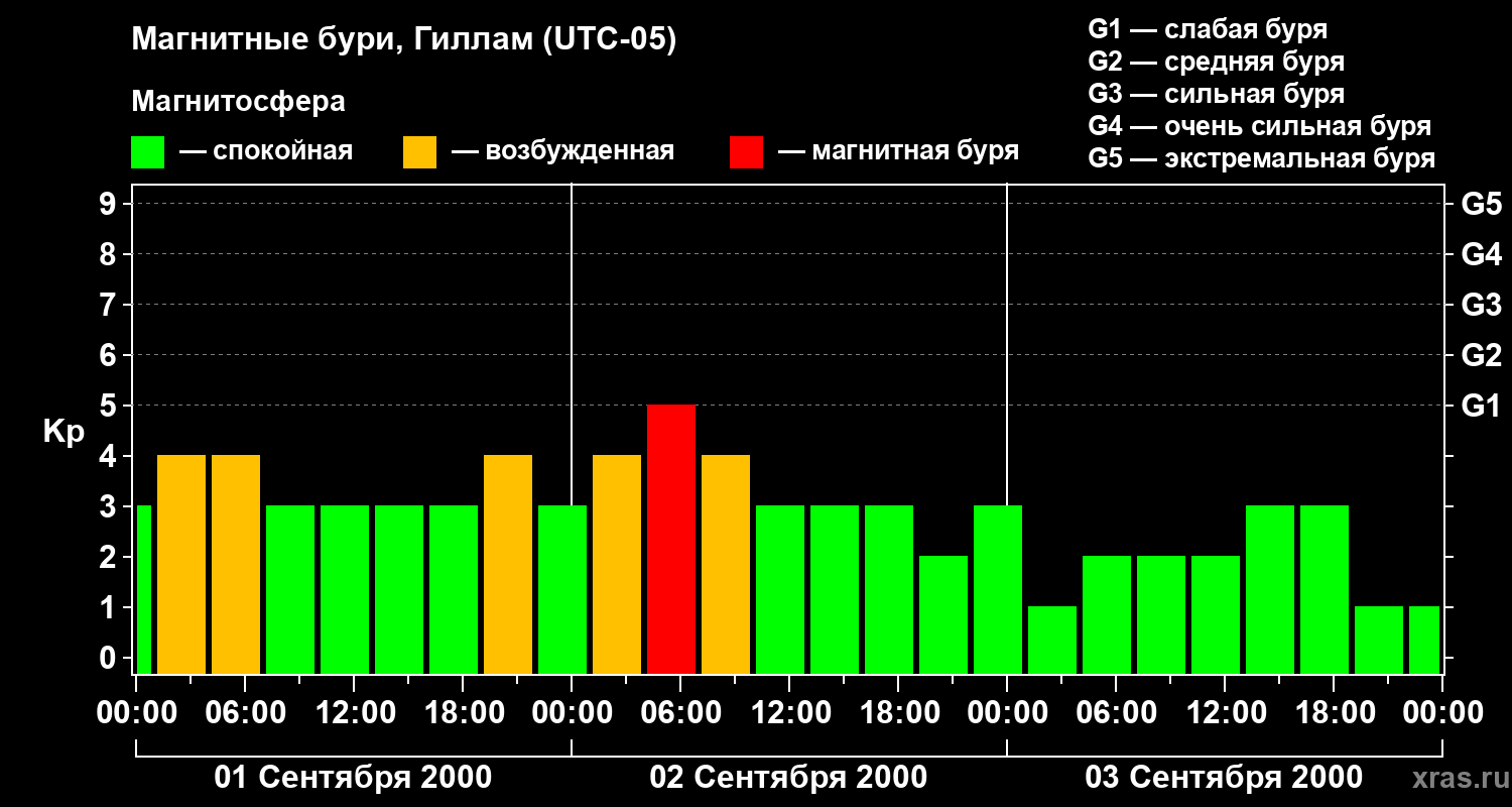 Магнитные бури в Гилламе 3 сентября 2000 года
