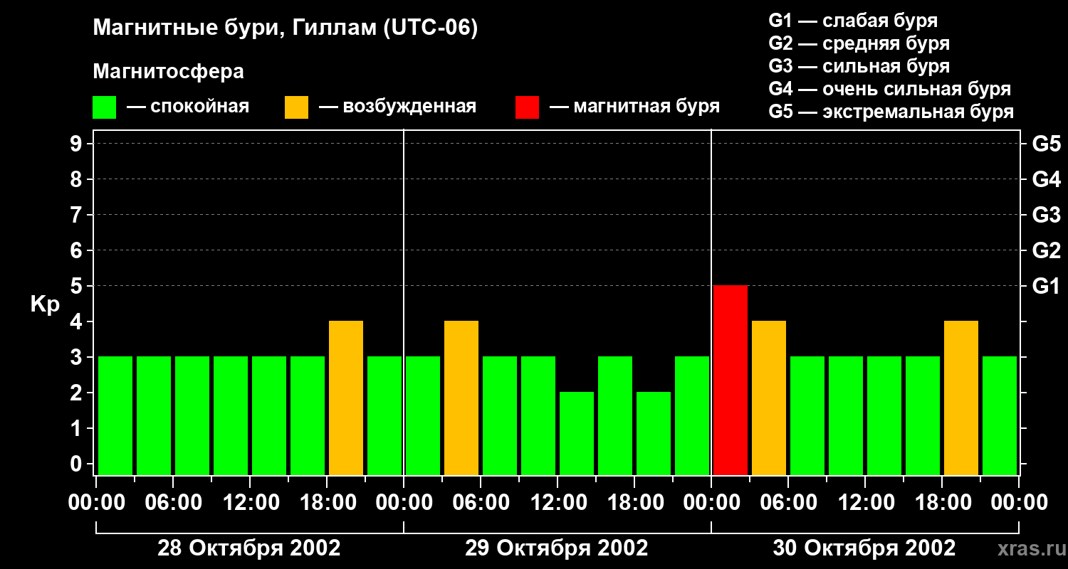 Магнитные бури в Гилламе — 30 октября 2002 года