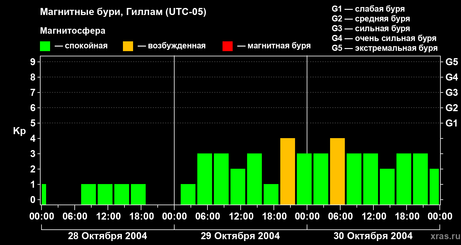 Магнитные бури в Гилламе — 30 октября 2004 года