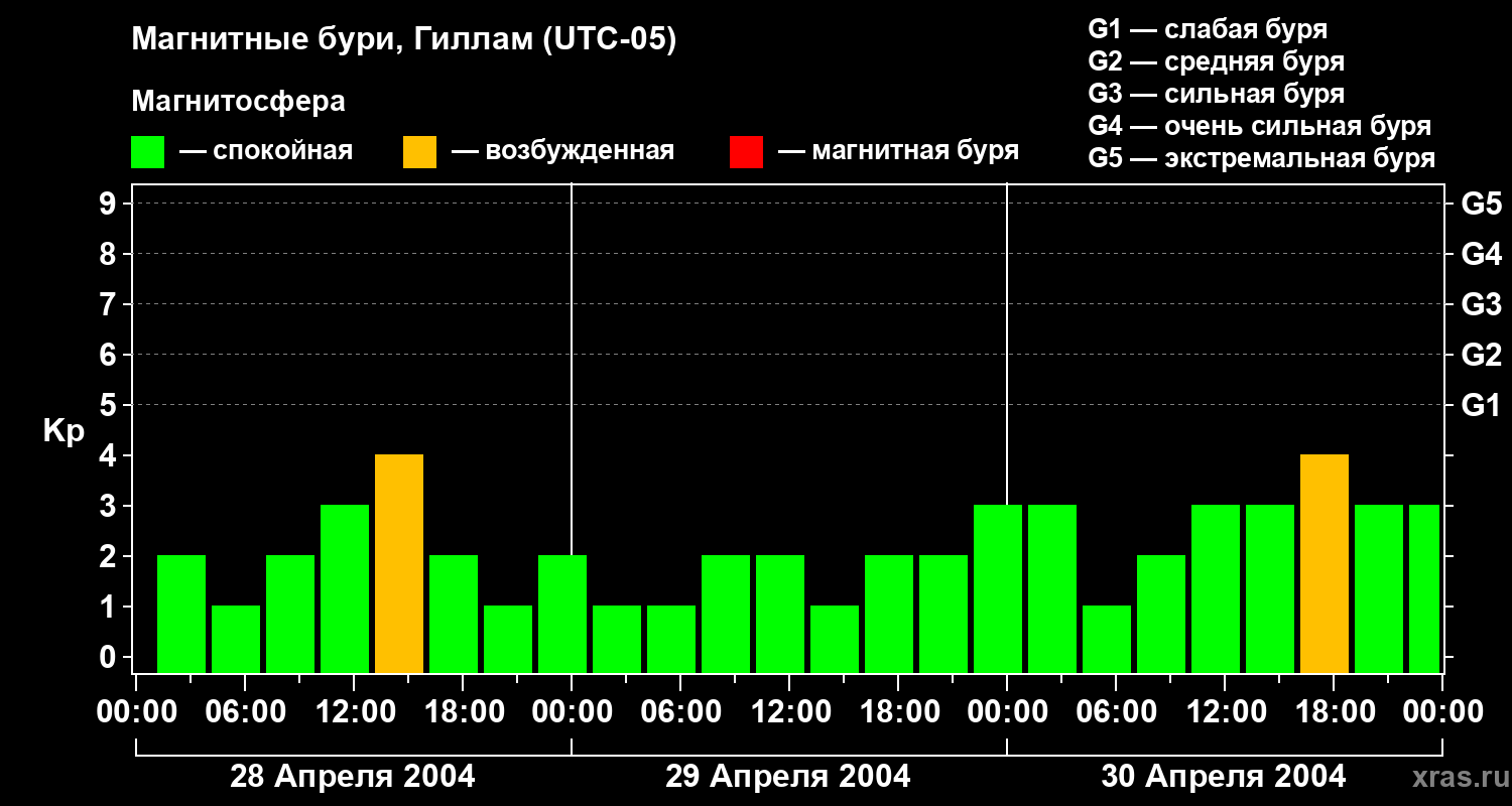 Магнитные бури в Гилламе — 30 апреля 2004 года