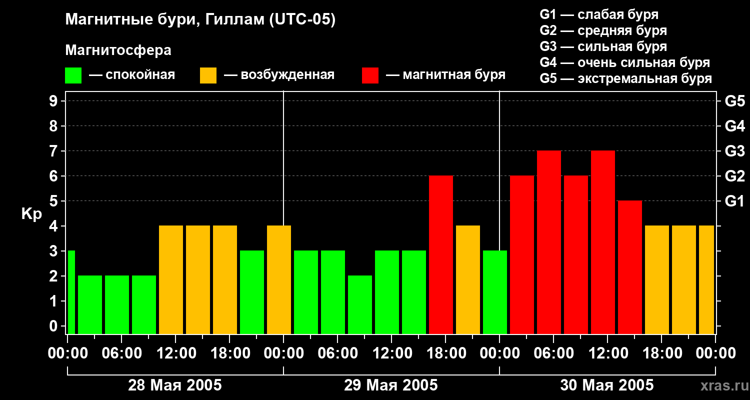 Магнитные бури в Гилламе — 30 мая 2005 года