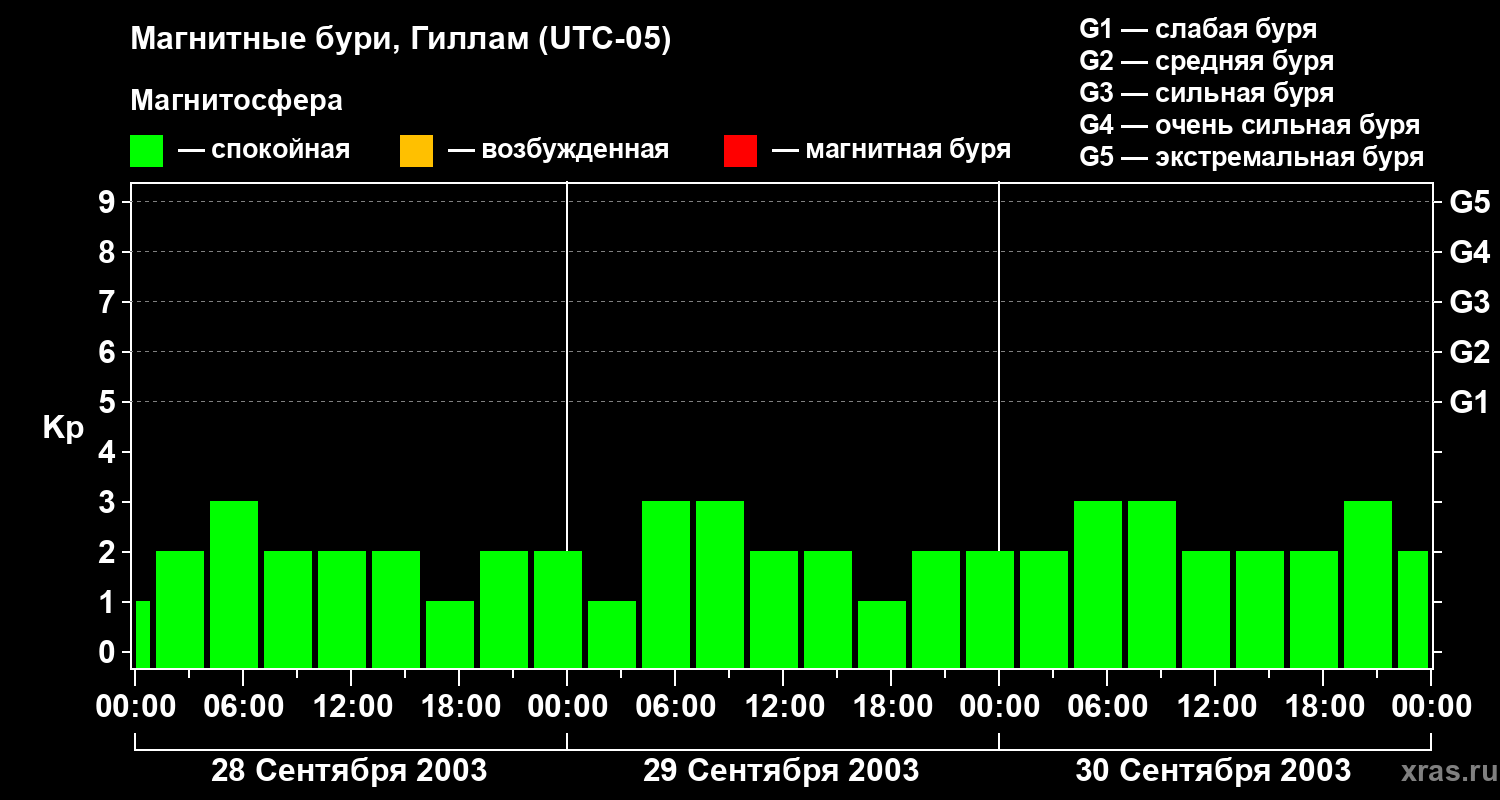 Магнитные бури в Гилламе — 30 сентября 2003 года