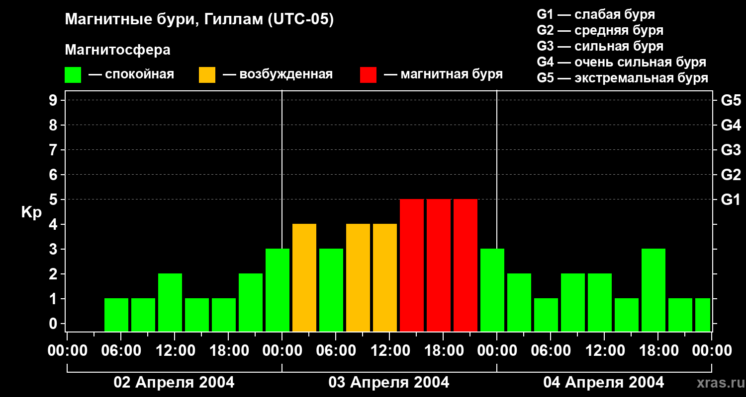 Магнитные бури в Гилламе — 4 апреля 2004 года