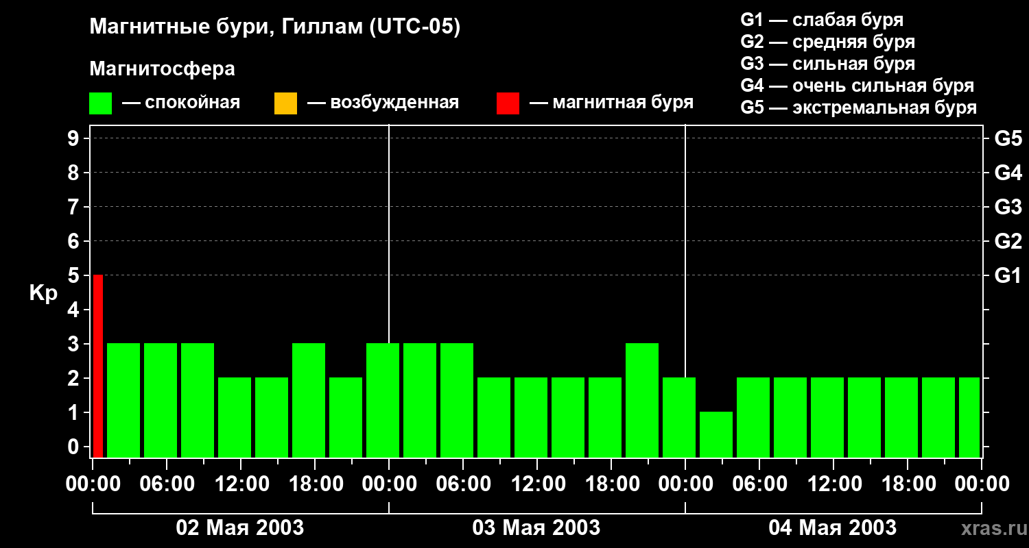 Магнитные бури в Гилламе — 4 мая 2003 года